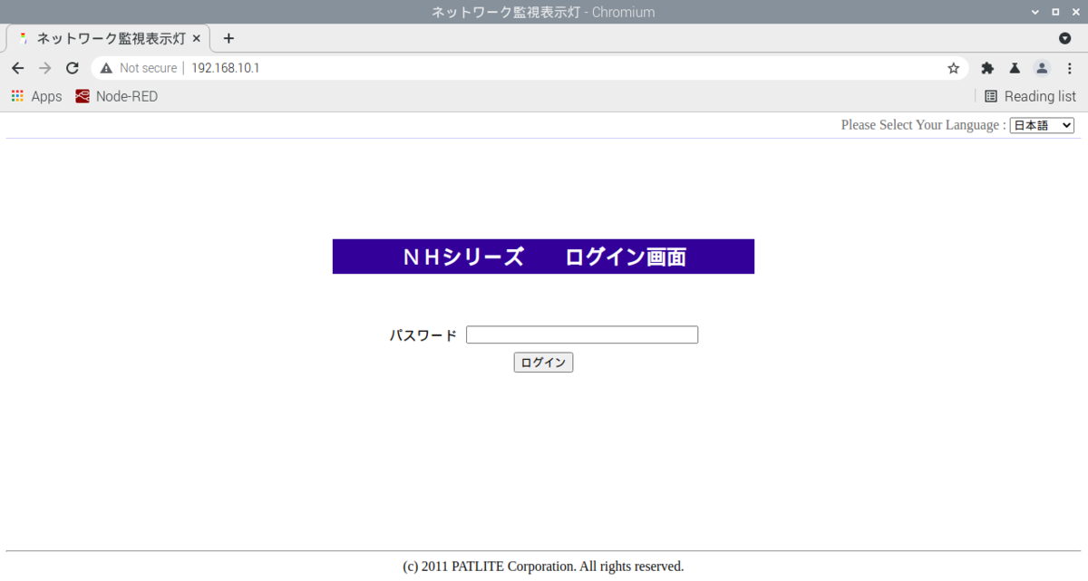 初期状態ではパスワードは patlite